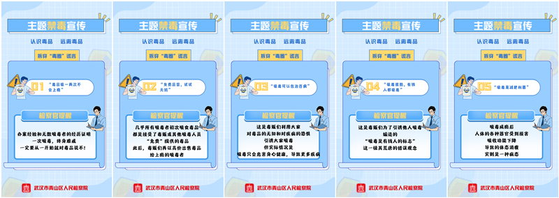 今年6月是我国第12个全民禁毒宣传月,青山区检察院坚持全面贯彻习近平总书记关于禁毒工作重要指示精神,立足检察工作,推进禁毒宣传与打击犯罪齐抓共进,积极营造全民禁毒氛围,发动全社会参与新时代禁毒人民战争,以实际行动迎接党的二十大胜利召开。