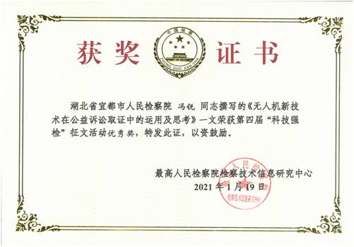宜都检察荣获第四届“科技强检”征文优秀奖