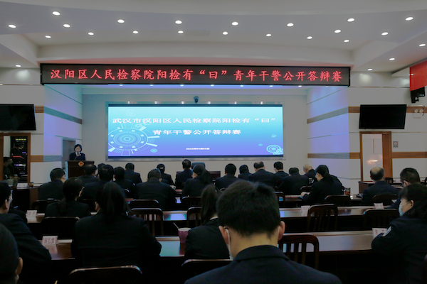 4月2日,武汉市汉阳区人民检察院阳检有“曰”系列培训之首场青年干警公开答辩赛举行,5位评委为17名选手逐一打分,全院干警现场观摩。