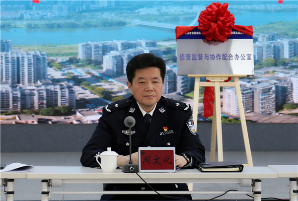 本网讯(通讯员 董新艳 陈仕奇)为深入贯彻落实最高人民检察院和公安部联合印发的《关于健全完善侦查监督与协作配合机制的意见》,强化检察机关法律监督质效,提升检警协作效能,建设平安东西湖、法治东西湖,3月2日,武汉市东西湖区人民检察院与武汉市公安分局东西湖分局侦查监督与协作配合办公室在区公安分局正式揭牌启用。东西湖区副区长、公安分局局长周文化,区检察院党组书记、检察长周罡共同为办公室揭牌。区委政法委常务副书记肖俊元主持,区检察院、区公安分局相关领导参加仪式。
